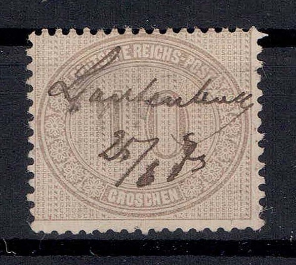 用钢笔在邮票上划一笔作盖销,并注上邮局名称和日清